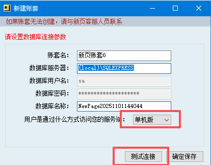 根据实际情况选择单机版/局域网/互联网,测试没有问题后保存即可。