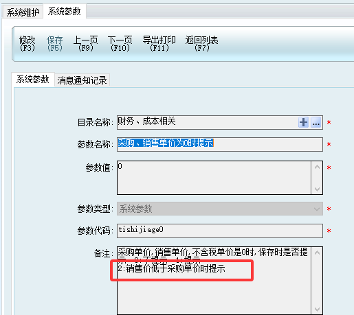 5.增加系统参数:当销售单价低于采购单价时弹出提示