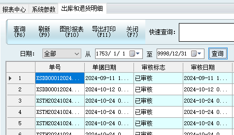 6.报表中心增加功能,出库和退货明细
