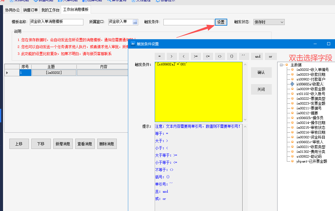 4.工作台模板完善触发条件符号