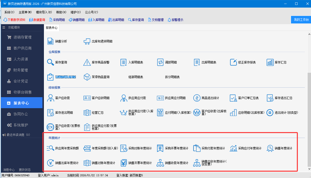 2.报表中心,增加各种年度统计报表