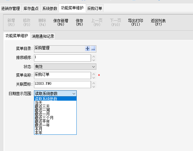 1.单据增加默认显示时间范围,本月、本年、上月。可以在系统参数修改所有单据显示时间,或者在功能维护里设置单独功能的查看,还可以在单据列表处右键,更多设置那里修改